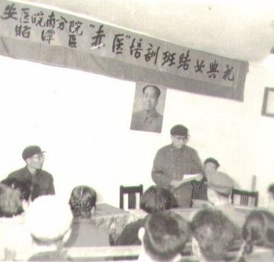 1974年,我校举办农村赤脚医生培训班。图为培训班结业典礼现场