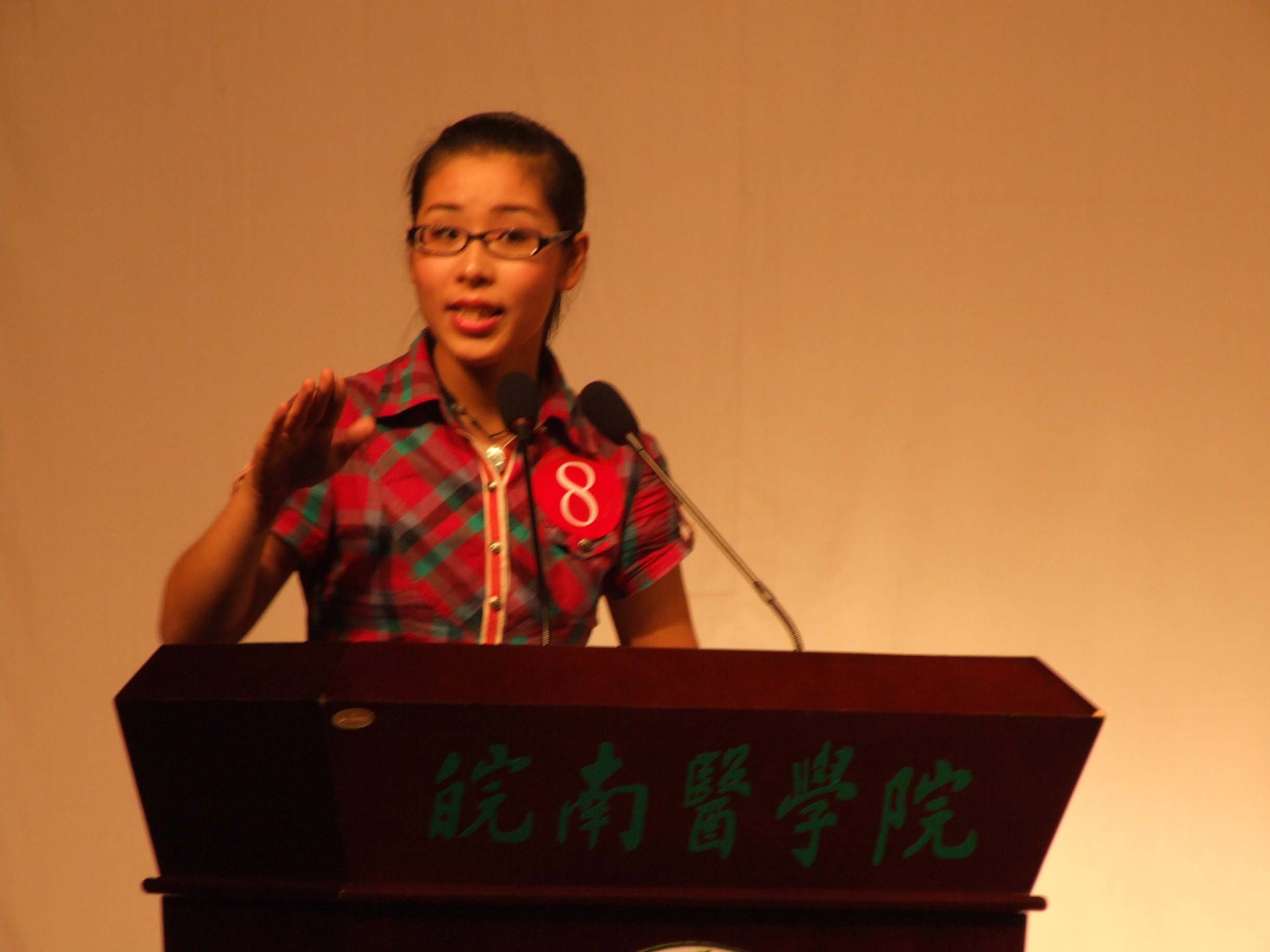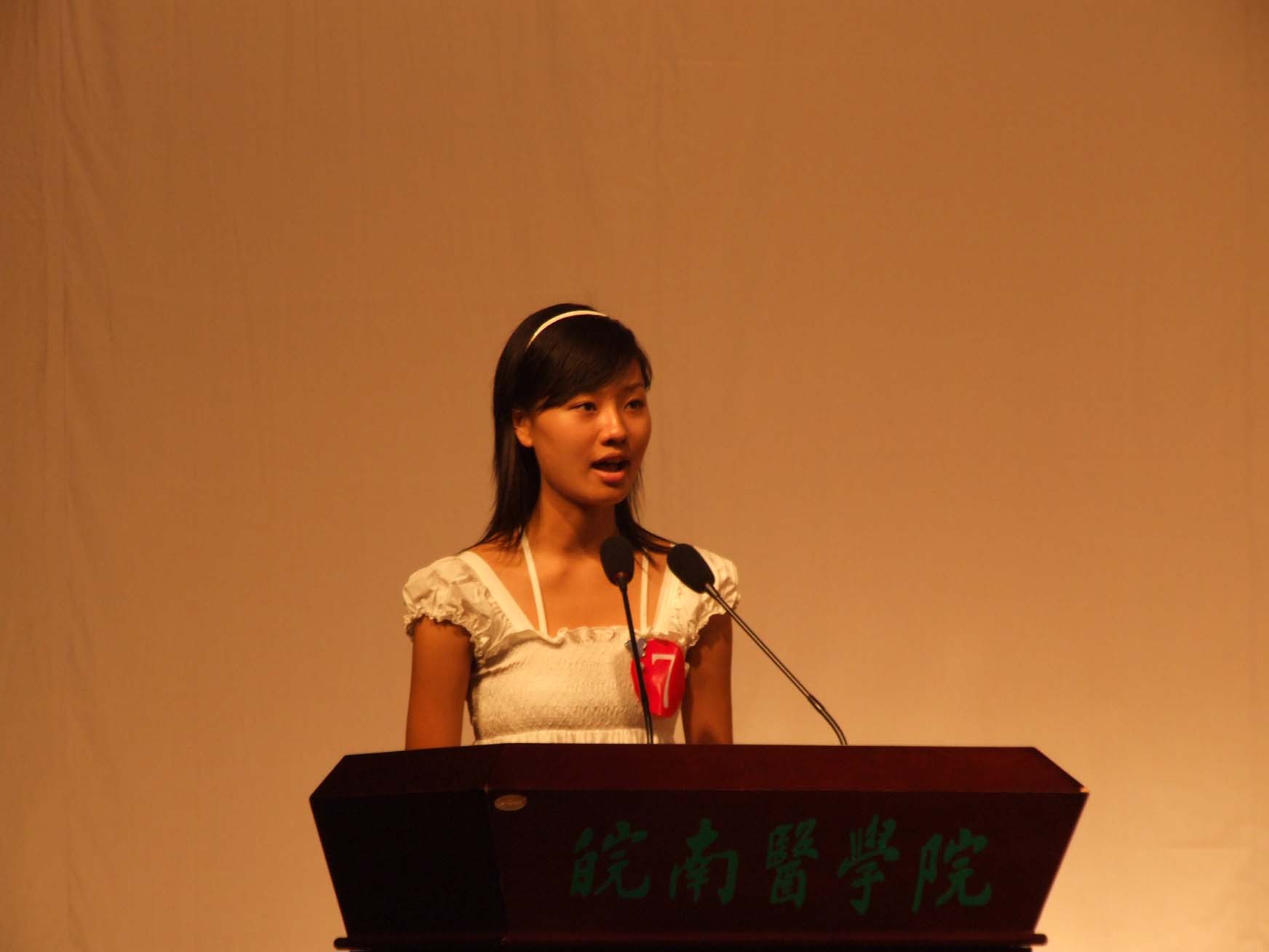 9月19日晚,校大学生活动中心灯火通明, 2008“CCTV杯”全国英语演讲大赛初赛在这里如期举行,从各系部层层选拔来的十二名选手参加了本次比赛。校党委副书记、院长宋建国、党委副书记郑勇超,教务处副处长徐朝阳、基础部副主任黄勤安、团委副书记李娜、以及医学一系书记杨新庆、医学二系主任姜国年、医学三系主任余海燕、人文与管理系主任胡鸿、药学系副主任刘晓平等出席了本次演讲赛。本次大赛由基础部外语教研室具体承办。