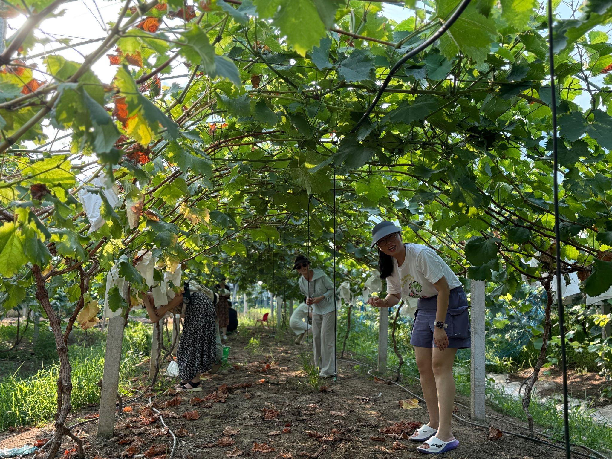 活动期间,生态体验与地方风情的融合为行程增添了几分意趣。教职工们走进疗休养基地附近的葡萄园,只见园内葡萄架上,颗颗晶莹饱满的葡萄挂满枝头,在阳光的照耀下闪烁着诱人的光泽。大家亲手摘下一串串葡萄,在指尖触碰间感受着丰收的喜悦与田园野趣。现场欢声笑语不断,大家互相交流采摘的经验和乐趣,享受大自然给予的美好馈赠,不仅体验到了劳动的快乐,也更加深入了解了新农村特色农业产业的成果。
