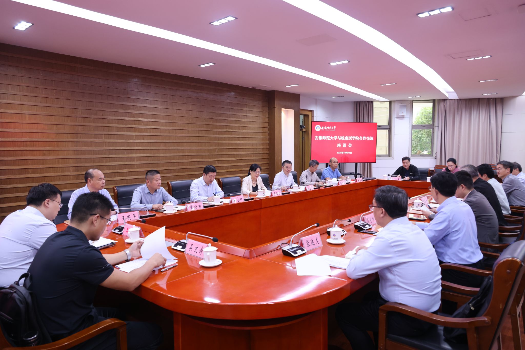 夏劲松介绍了我校的基本情况以及此次交流访问的主要目的。她表示,安徽师范大学作为一所综合性大学,在多学科领域拥有深厚积累,其学科优势与我校医学专业特色高度契合。希望能开启并推进双方在多领域的深度协作,整合双方优质资源,围绕医学前沿问题联合开展攻关,力争在脑科学、生物医学等方向取得突破性进展;同时希望在学科建设方面相互借鉴成功经验,实现优势互补、互利共赢,共同提升学科建设水平与影响力,为推动两校实现更高质量发展、增强服务地方经济社会发展能力作出积极努力。