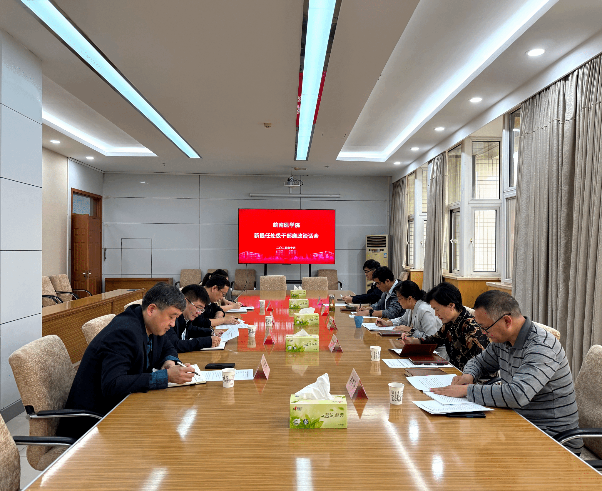 为进一步增强新提任处级干部廉洁自律意识,筑牢拒腐防变思想防线,10月16日上午,学校在行政会议室召开新提任处级干部任职廉政集体谈话会议。党委书记夏劲松,党委副书记贾贤燕,党委常委、纪委书记、监察专员王保中出席会议。会议由贾贤燕主持。