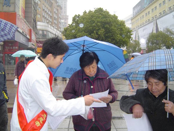 整装待发 ![]() 同学们冒雨在步行街向市民讲解 ![]() 同学们在火车站向旅客耐心讲解 ![]() 同学们在汽车站向旅客耐心讲解 (医学一系 杨钟会/文 姜皖杰、汪文君、李鸿显/摄 宣传部 任苔蓉/审) |