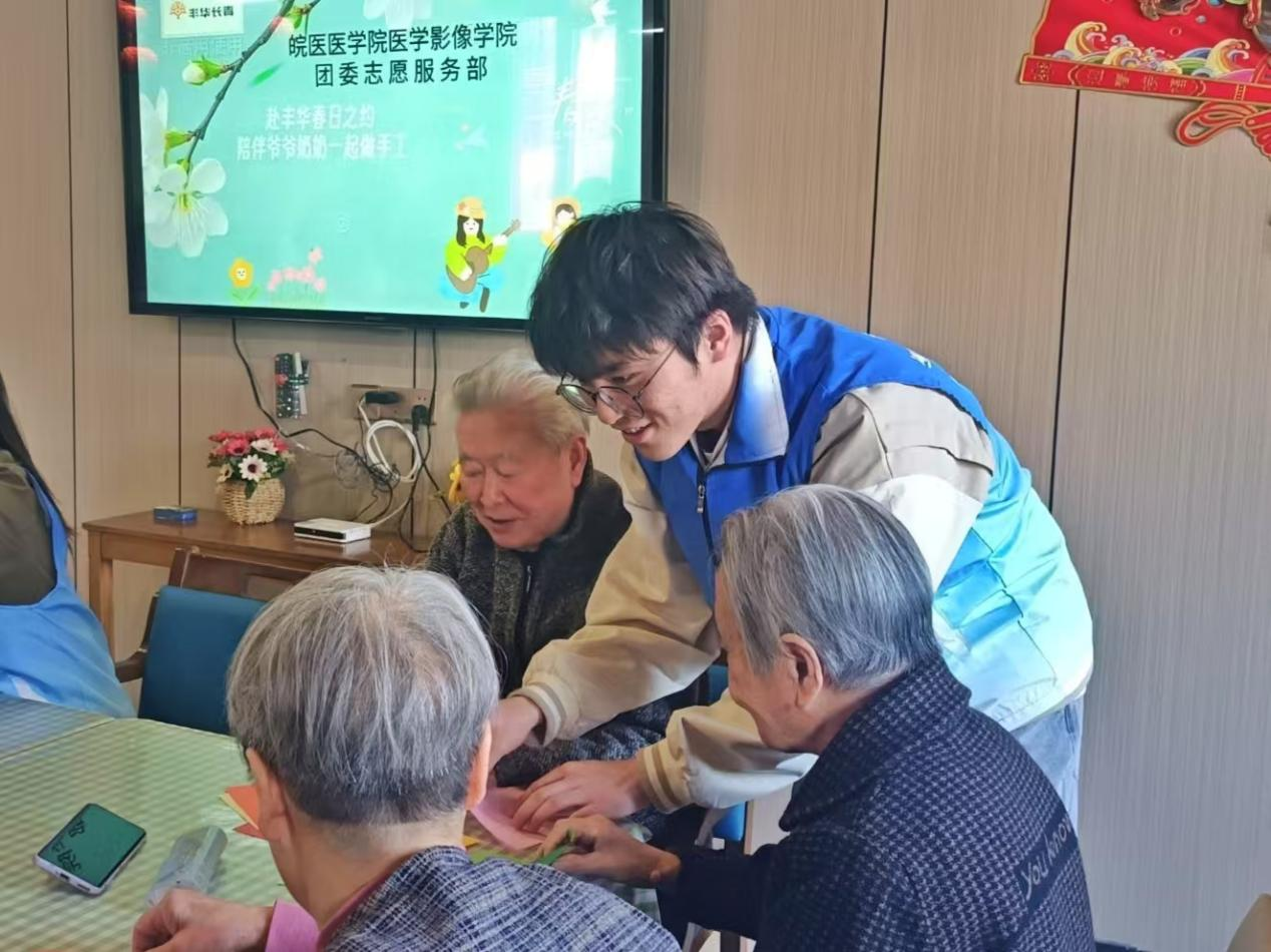 一张彩纸,折叠出跨越年龄的温情;一段对话,串联起岁月沉淀的智慧。本次志愿活动以折纸为载体,用青春活力润泽“夕阳红”,医学影像学院将继续推出相关志愿服务活动,让尊老敬老之风浸润社会。(苏悦、张昱昊/文 苏悦/摄)