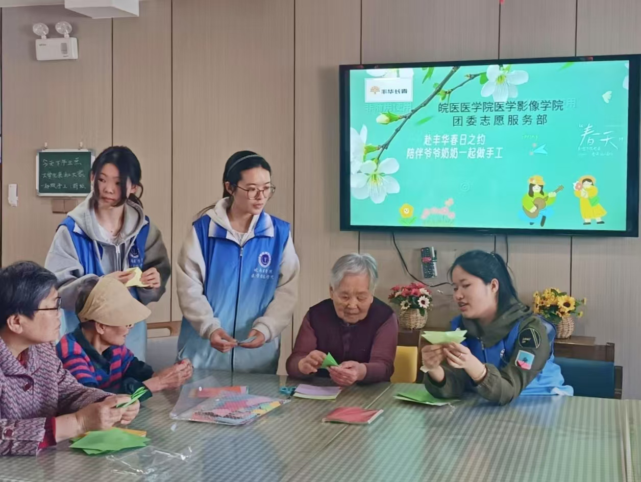 巧手寄情,折纸搭起心灵桥梁。为弘扬尊老敬老传统美德,传递情感正能量,丰富老人的精神文化生活,医学影像学院组织志愿服务队于3月23日下午在丰年养老院开展“折纸寄情,共话桑榆”主题志愿服务活动,希望通过趣味折纸,在春日里描绘温馨画卷。