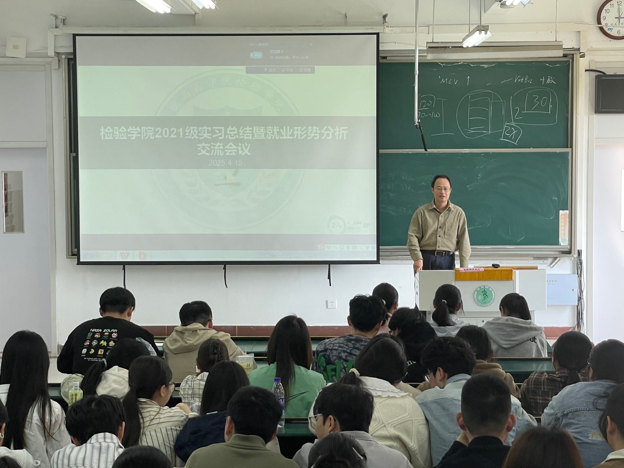为做好实习生实习返校和就业工作,帮助学生明确离校前的各项工作流程和安排,引导学生树立正确的就业观、择业观,增强风险防范意识,检验学院于4月15日在滨江校区(南区)西三教学楼召开2021级实习总结暨就业形势分析交流会。学院党委书记刘影、院长洪亮、辅导员曹玉祥及2021级全体毕业生参加会议,会议由曹玉祥主持。