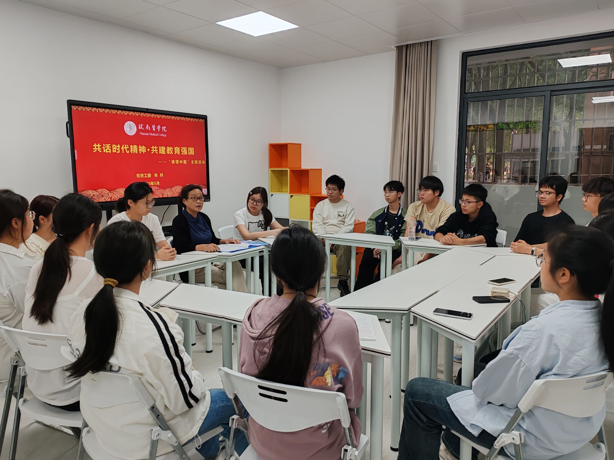 为深入学习贯彻习近平总书记关于教育的重要论述,凝聚教育强国建设共识,5月12日,人文与管理学院联合基础医学院邀请校关工委委员朱丹老师在人文与管理学院“一站式”学生社区开展“读懂中国”座谈交流会,人文与管理学院、基础医学院学生代表参加。