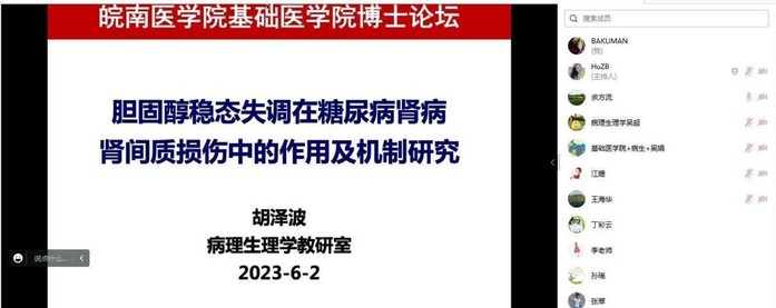 为充分调动教师开展科学研究的积极性,浓厚校园学术氛围,6月2日上午,科研处联合基础医学院开展第九十三期博士论坛,邀请病理生理学教研室胡泽波博士主讲。报告以线上形式举行,相关专业教师和在读研究生参加。