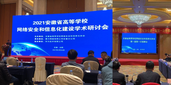 3月25日-26日,2021年安徽省高等学校网络安全和信息化建设学术研讨会暨安徽省高等学校网络安全和信息化协会第一届理事会在合肥召开,省教育厅科研处处长刘业勋等主管单位领导和协会会员单位代表共一百余人参加会议。安徽省高等学校网络安全和信息化协会成立于2020年8月,旨在为省内各高等院校之间网络安全和信息化规划建设搭建沟通交流平台,我校作为第一届理事单位参加会议。